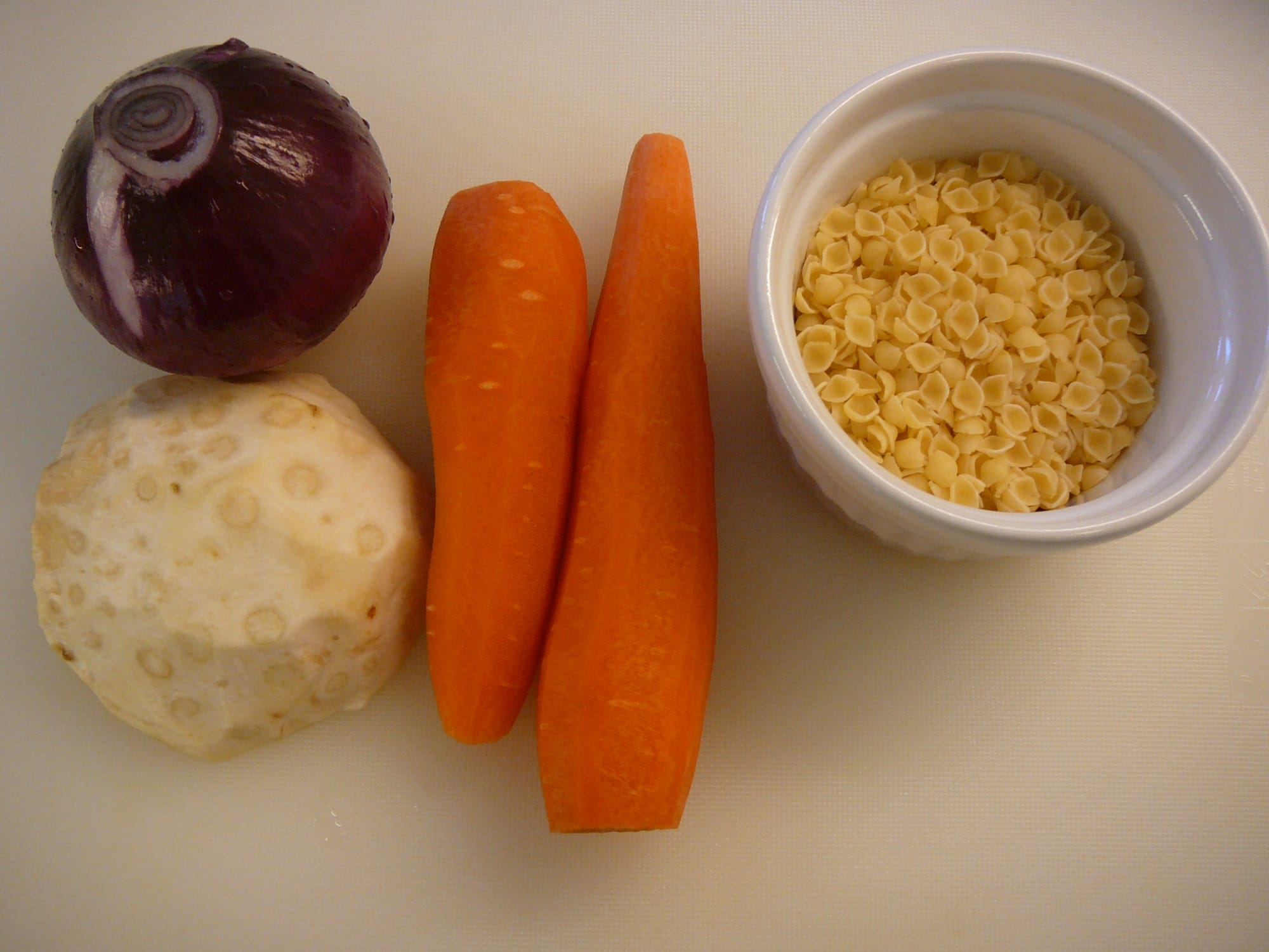 A hagymát, a sárgarépát és a zellert megpucolom.